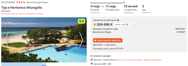 Туры из Москвы на Шри-Ланку на 2 недели от 53.300 рублей за человека.