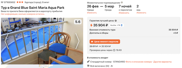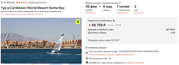 Стоимость в примерах указана за одного человека при условии поездки вдвоем, стоимость туров для одного человека можно посмотреть здесь или на страницах отелей.
