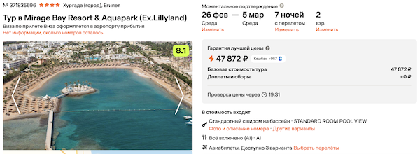 Mirage Bay Resort & Aquapark 4* 23.900 рублей за человека (47.900 рублей за двоих)