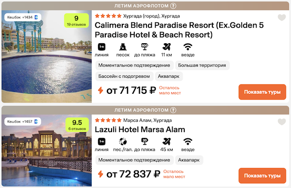— прямой перелет в Хургаду и обратно, Аэрофлот;