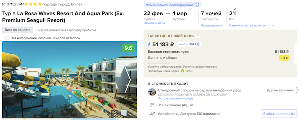 Прямой перелет Аэрофлотом из Москвы в Хургаду, трансферы и неделя в отеле от 25.600 рублей за человека.