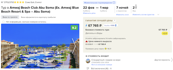 Стоимость в примерах указана за одного человека при условии поездки вдвоем, стоимость туров для одного человека можно посмотреть здесь или на страницах отелей.
