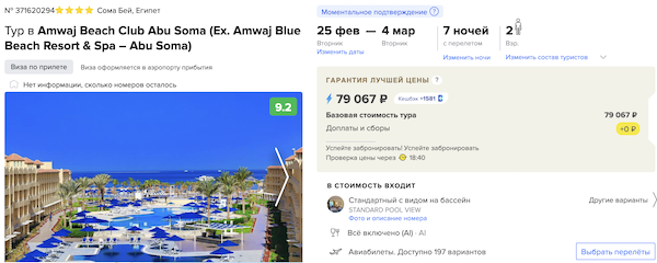 Стоимость в примерах указана за одного человека при условии поездки вдвоем, стоимость туров для одного человека можно посмотреть здесь или на страницах отелей.