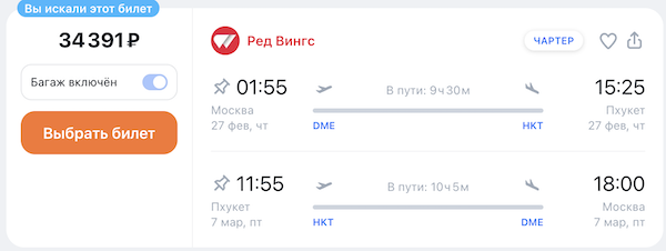 Горящие билеты на прямые чартерные рейсы из Москвы на Пхукет от 29.500 рублей туда-обратно.