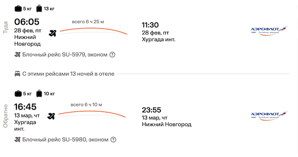 — прямой перелет в Хургаду и обратно, Аэрофлот;