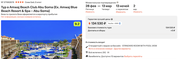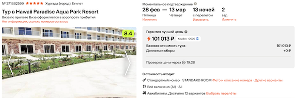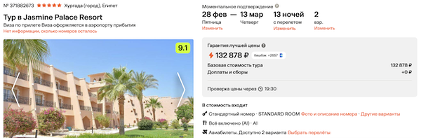 Стоимость в примерах указана за одного человека при условии поездки вдвоем, стоимость туров для одного человека можно посмотреть здесь или на страницах отелей.