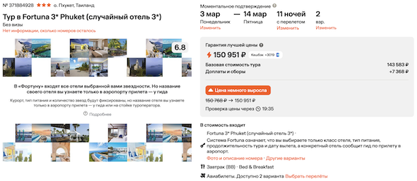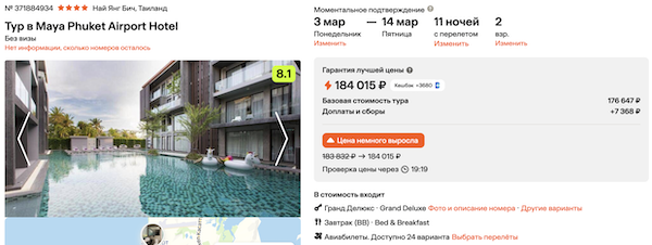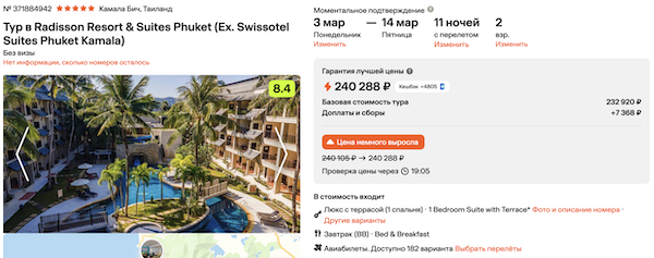 Туры из Санкт-Петербурга на Пхукет в марте от 75.400 рублей за человека.