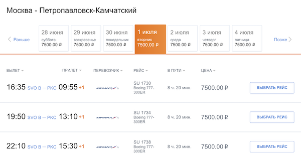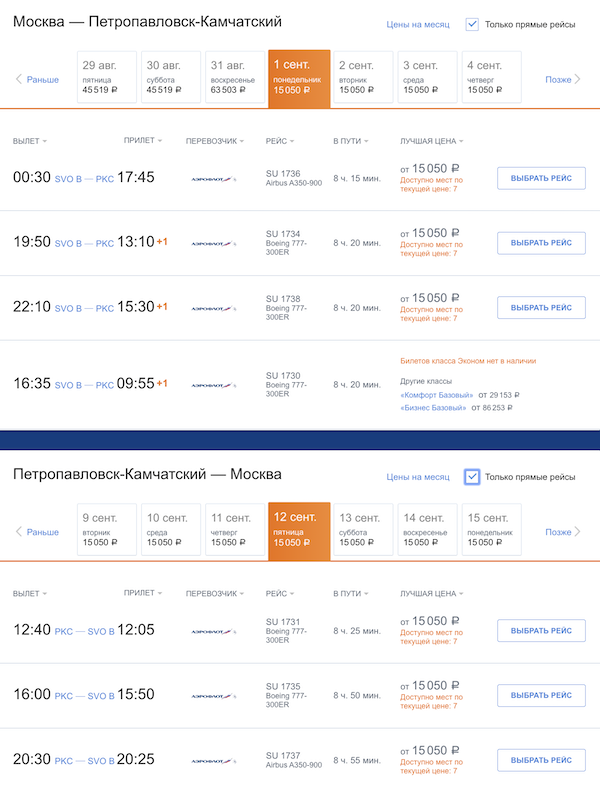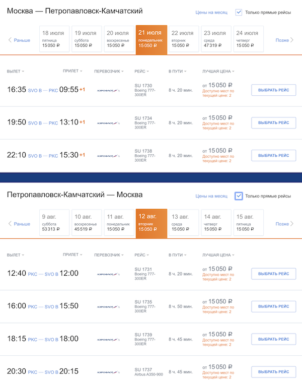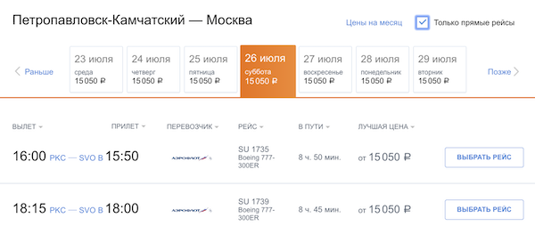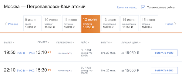 На Камчатку летом: прямые рейсы Аэрофлота из Москвы от 30.100 рублей туда-обратно. Для льготных категорий 15.000 рублей.
