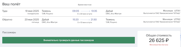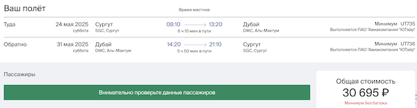 Минимальные цены в мае. Рейсы из Сургута по субботам, из Тюмени по понедельникам и пятницам.