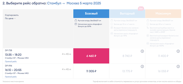 Из Владикавказа разные даты в марте (рейсы по понедельникам и пятницам)