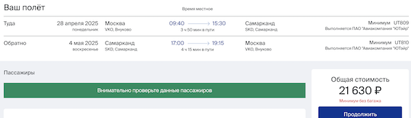 Майские праздники в Узбекистане: билеты из Москвы в Самарканд 21.600 рублей туда-обратно.
