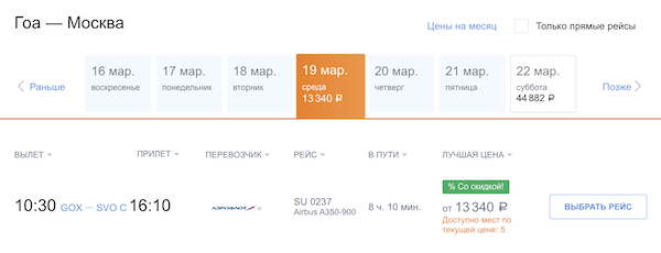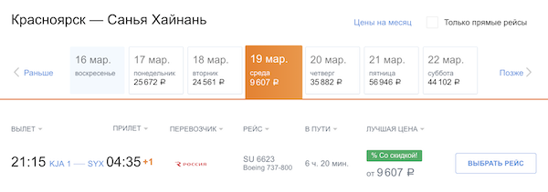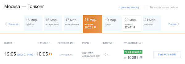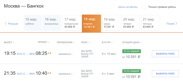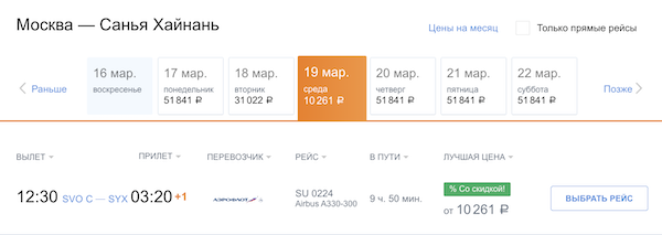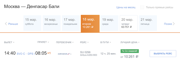 У Аэрофлота распродажа билетов на вылеты в ближайшие дни и только на билеты в одну сторону: прямые рейсы в Бангкок, на Бали, Хайнань (и другие направления) 10.300 рублей в одну сторону.