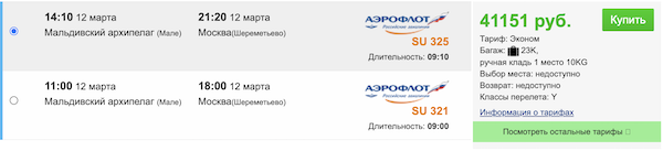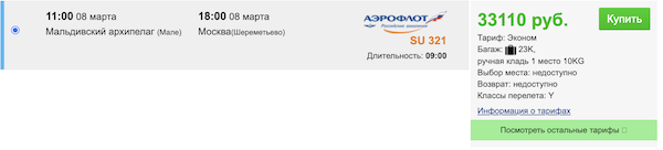Горящие билеты на прямые рейсы Аэрофлота из Москвы на Мальдивы: от 10.400 рублей в одну сторону, от 43.500 туда-обратно.
