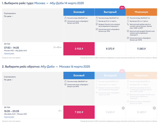 Вылеты из Москвы 14 и 16 марта, обратно 16, 17 и 19 марта.