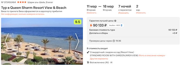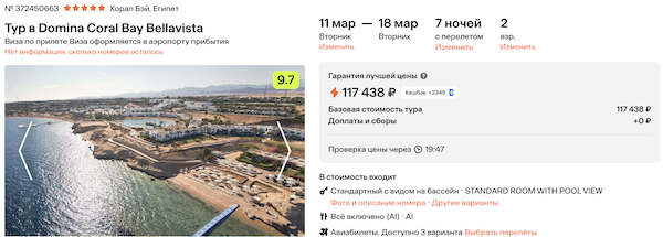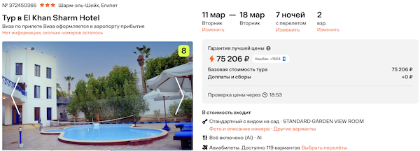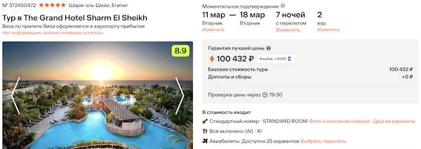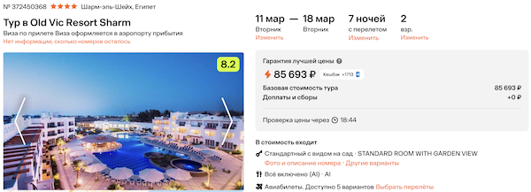 Стоимость в примерах указана за одного человека при условии поездки вдвоем, стоимость туров для одного человека можно посмотреть здесь или на страницах отелей.