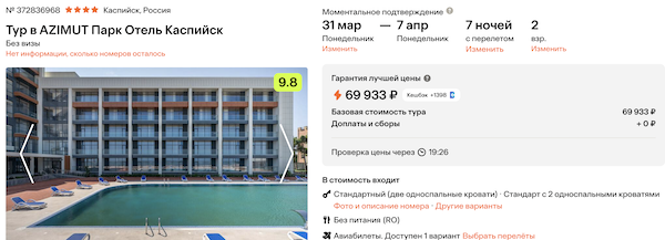 Стоимость в примерах указана за одного человека при условии поездки вдвоем, стоимость туров для одного человека можно посмотреть здесь или на страницах отелей.