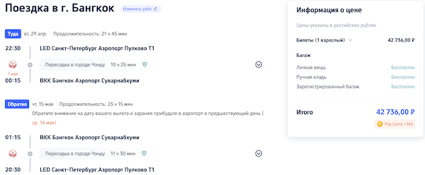 Из Санкт-Петербурга в Таиланд от 42.700 рублей туда-обратно.