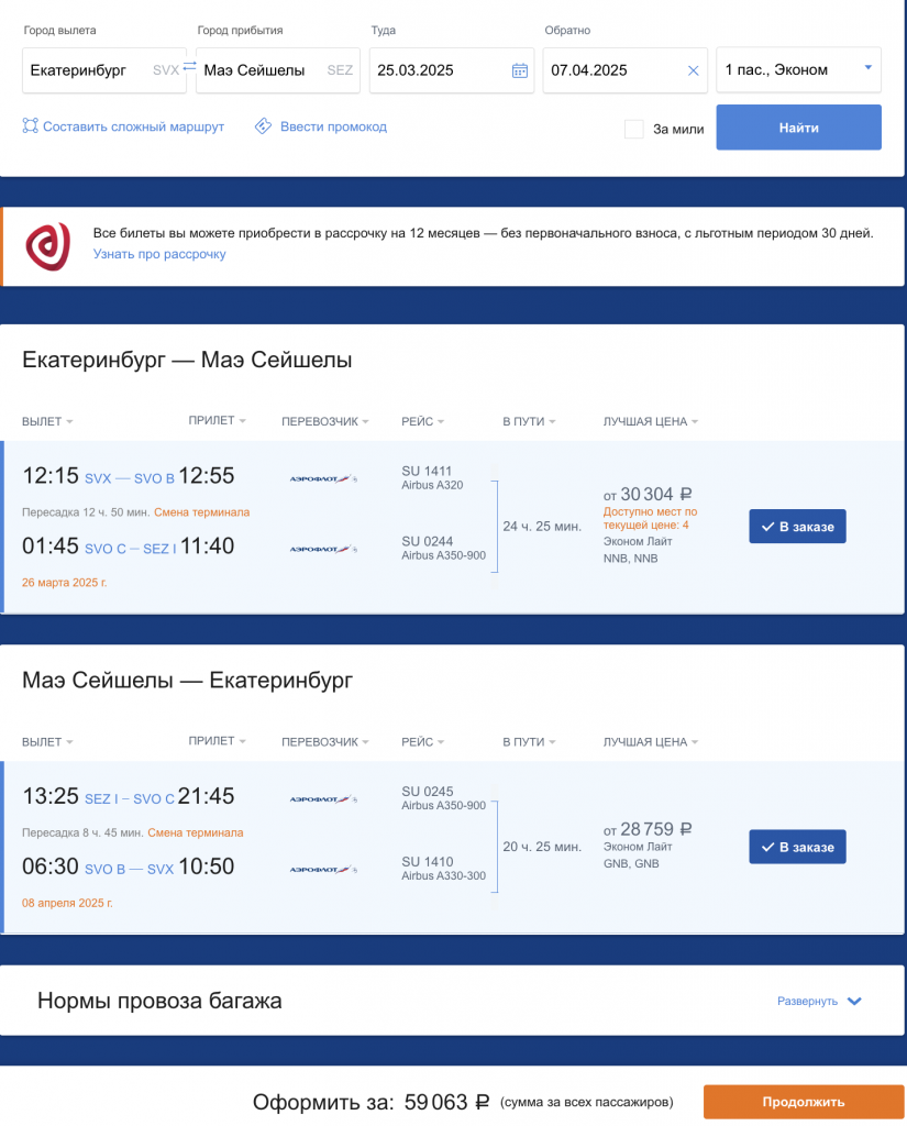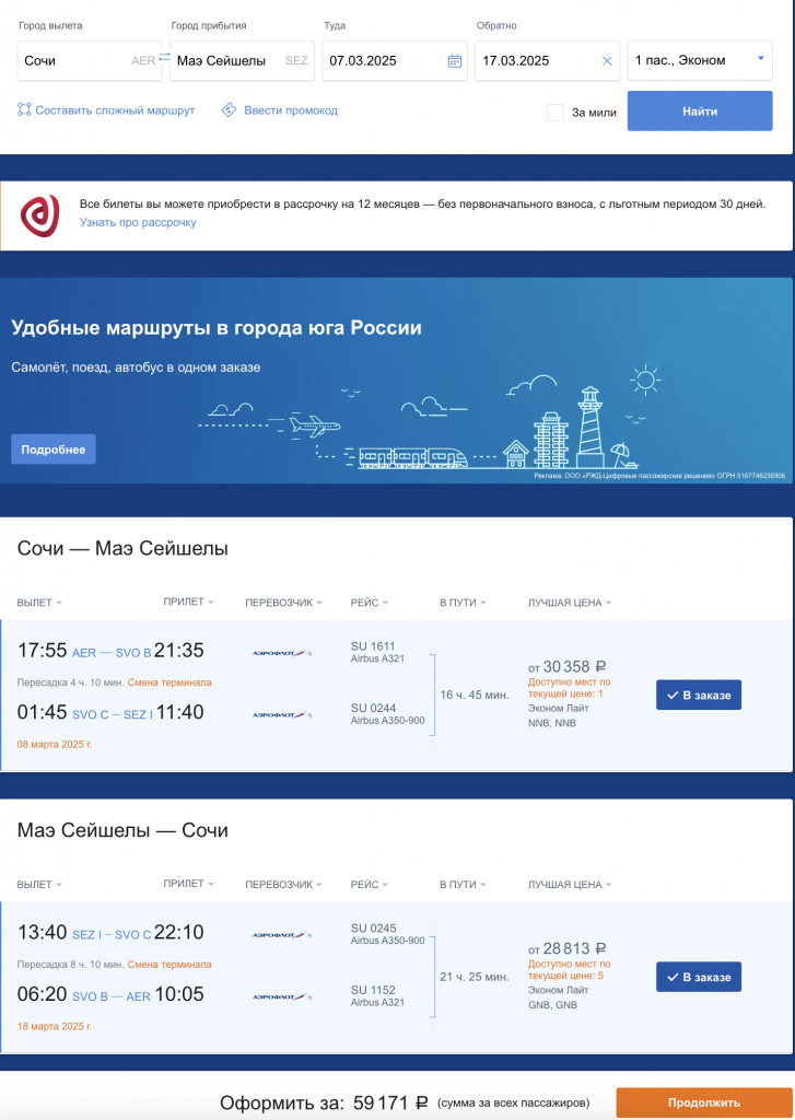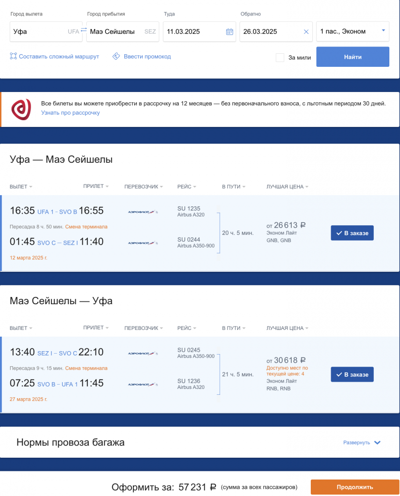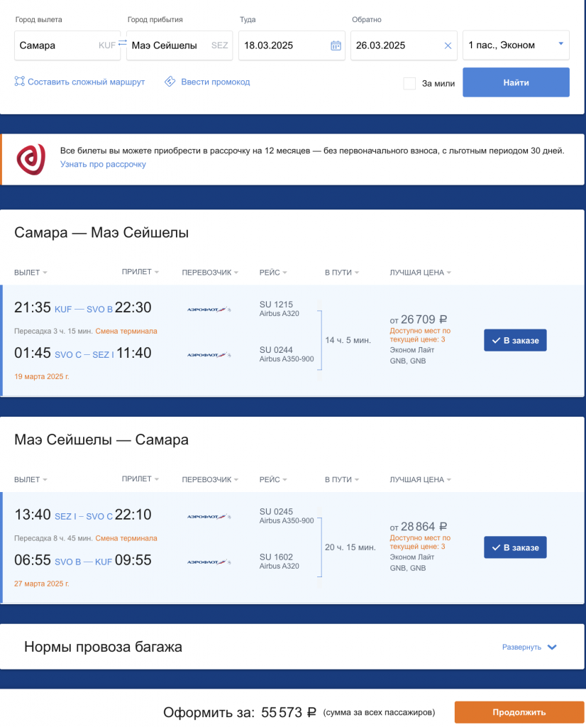 Аэрофлот: из Самары, Казани, Уфы и других городов на Сейшелы от 55.300 рублей туда-обратно.