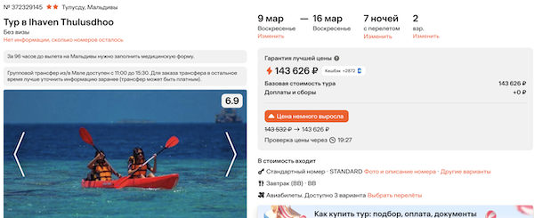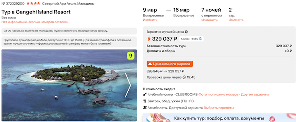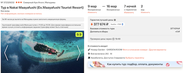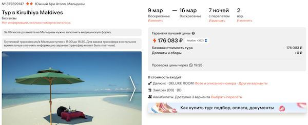 Горящие туры из Москвы на Мальдивы 71.800 рублей за человека.
