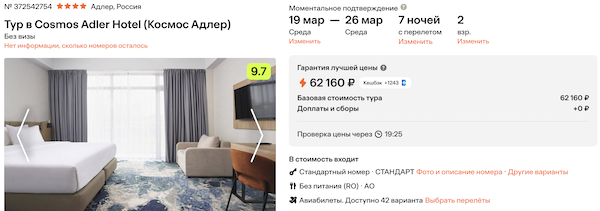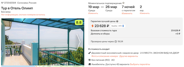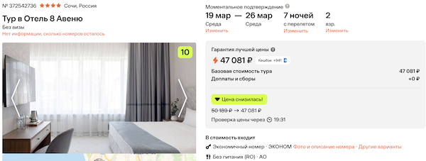 Стоимость в примерах указана за одного человека при условии поездки вдвоем, стоимость туров для одного человека можно посмотреть здесь или на страницах отелей.