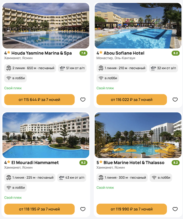 Туры из Москвы в Тунис в начале мая: прямой перелет, трансферы и неделя в отеле от 55.600 рублей за человека.
