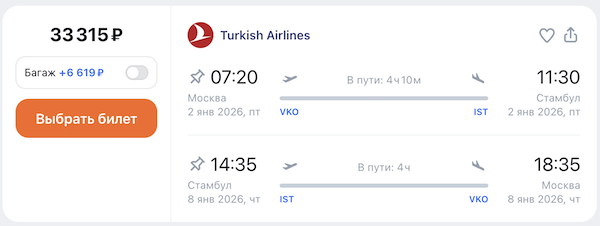 На новогодние каникулы рейсами Turkish Airlines: из Москвы в Стамбул 33.300 рублей туда-обратно, из Санкт-Петербурга в Болонью 38.900 рублей и многие другие направления.