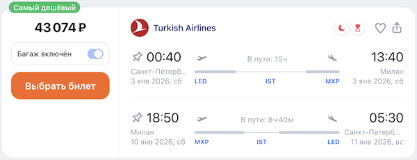 Из Санкт-Петербурга в Милан с 3 по 10 января