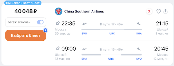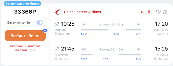 Майские праздники в Китае: билеты из Москвы в Шэньчжэнь, Гуанчжоу, Куньмин и другие города от 31.500 рублей туда-обратно.