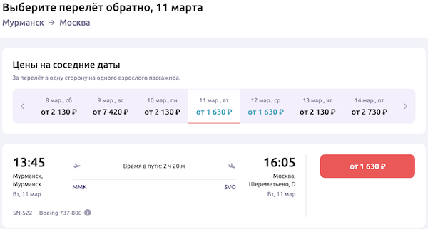 Из Москвы утром в субботу 8 марта (а также другие даты)