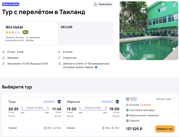 — прямой перелет в Бангкок и обратно, Аэрофлот;