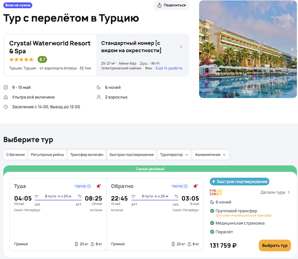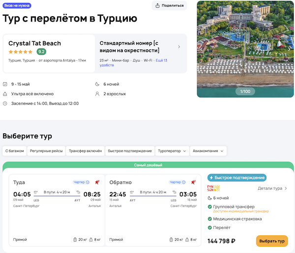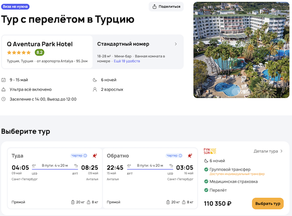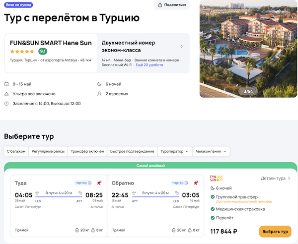 — прямой перелет в Анталью и обратно;