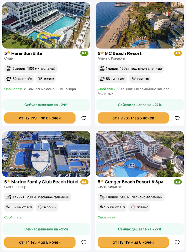Стоимость в примерах указана за одного человека при условии поездки вдвоем, стоимость туров для одного человека можно посмотреть здесь или на страницах отелей.