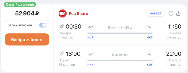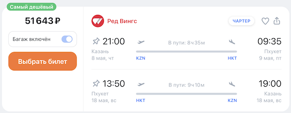 Прямые чартерные рейсы на Пхукет из Казани, Самары и Москвы от 51.600 рублей туда-обратно.