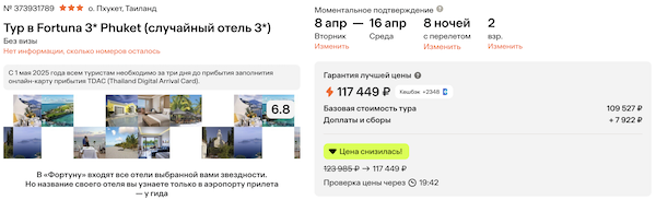 Горящие туры из Москвы на Пхукет от 58.700 рублей за человека.