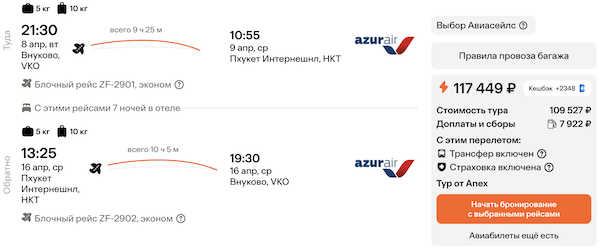 — прямой перелет на Пхукет и обратно, AzurAir;