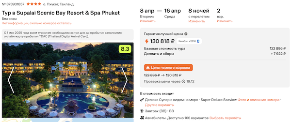 Supalai Scenic Bay Resort & Spa Phuket 4* с завтраками 65.400 рублей за человека (130.800 рублей за двоих)