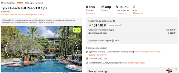 Ката: Peach Hill Resort & Spa 3* с завтраками 80.700 рублей за человека (161.400 рублей за двоих)