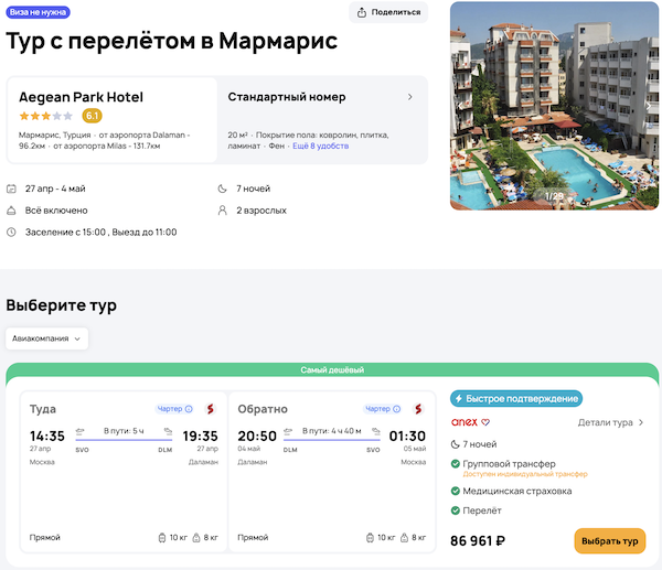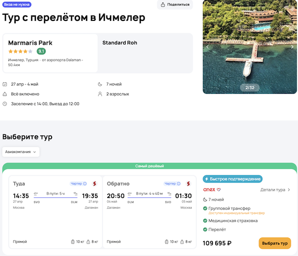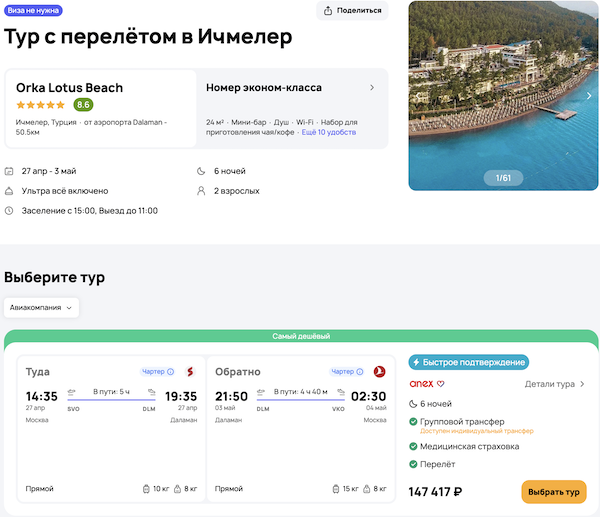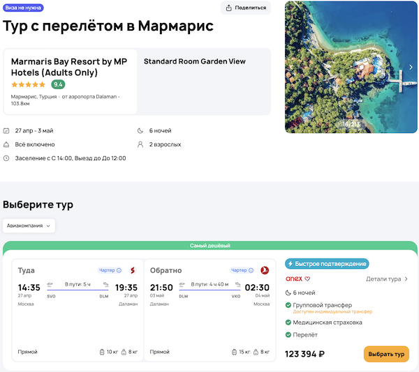 — прямой перелет в Даламан и обратно, авиакомпания Southwind;
