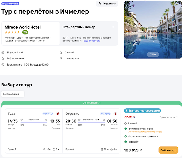 Стоимость в примерах указана за одного человека при условии поездки вдвоем. Стоимость туров для 1 человека можно посмотреть здесь или на странице отелей, изменив количество туристов.
