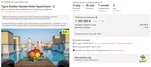 Golden Sands Hotel Apartment 52.500 рублей за человека (105.100 рублей за двоих)