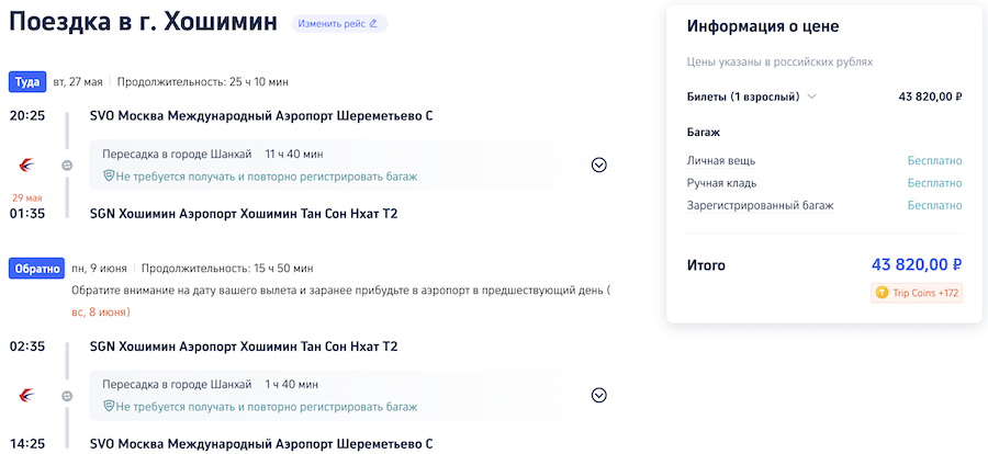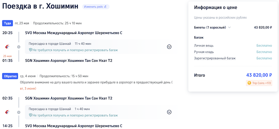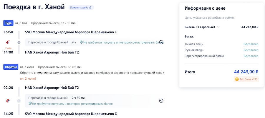Рейсы выполняются China Eastern с пересадкой в Шанхае.