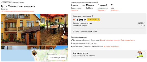 Стоимость в примерах указана за одного человека при условии поездки вдвоем, стоимость туров для одного человека можно посмотреть здесь или на страницах отелей.
