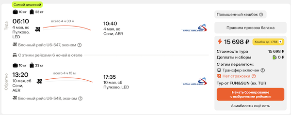 — перелет в Сочи и обратно, Уральские авиалинии;