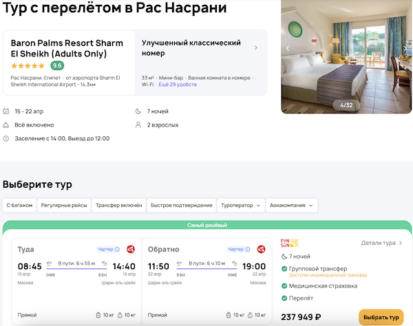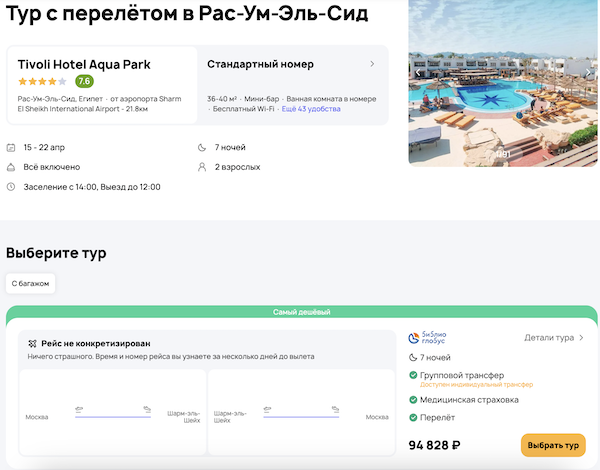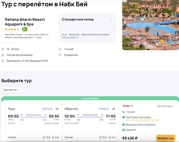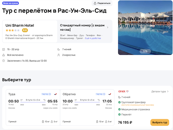 — прямой перелет в Шарм-эш-Шейх и обратно;
