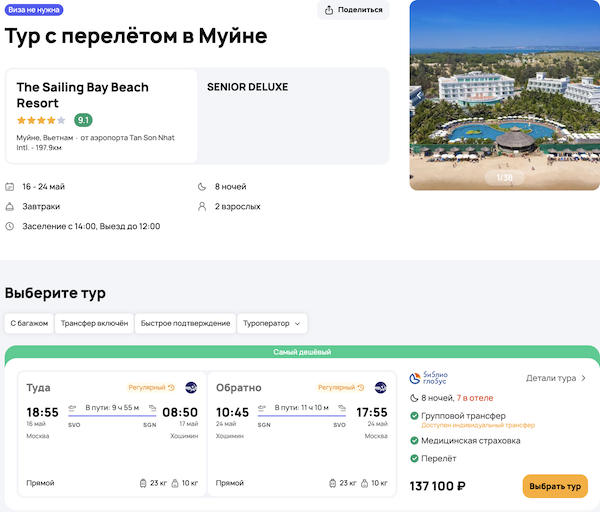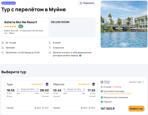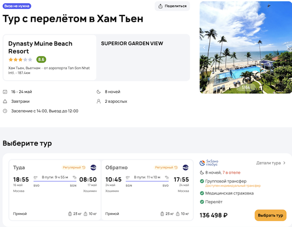 — прямой перелет в Хошимин и обратно, Аэрофлот;