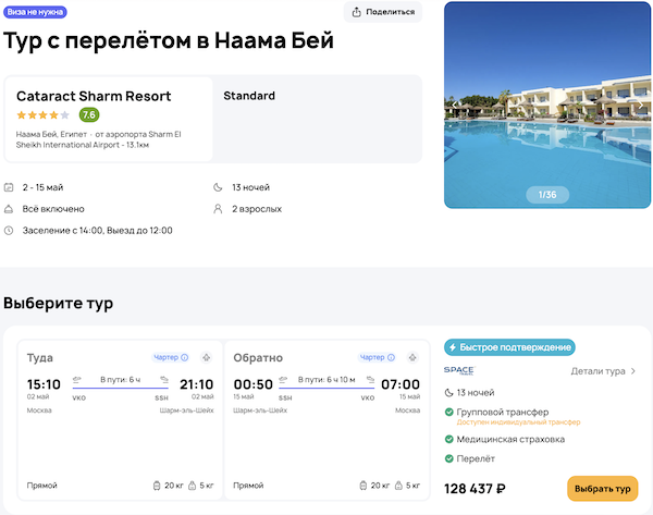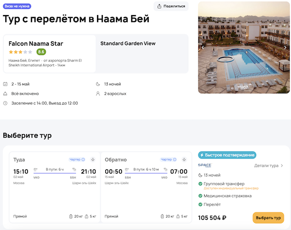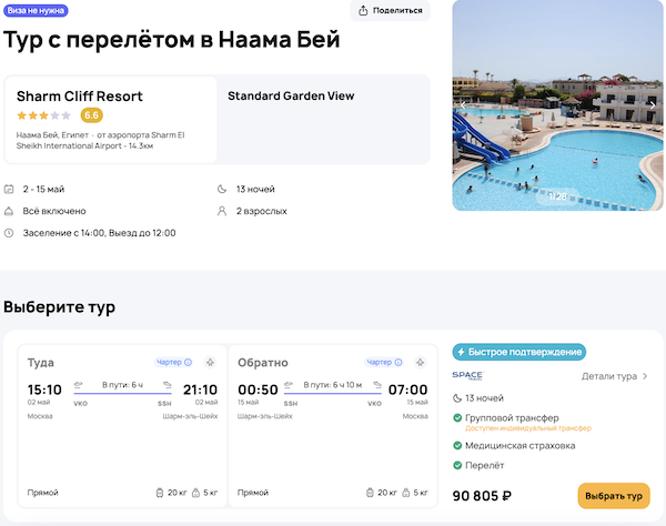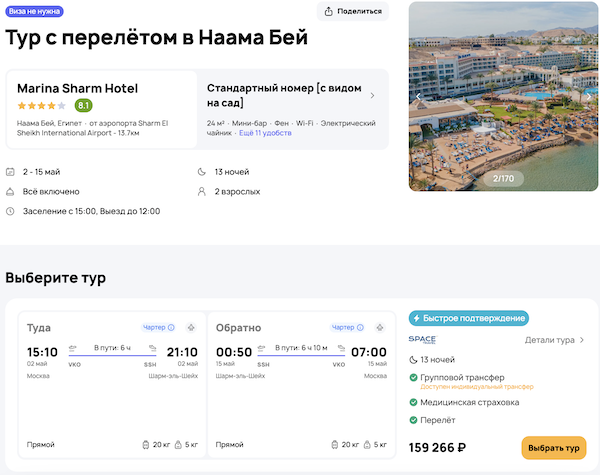 — прямой перелет в Шарм-эш-Шейх и обратно;