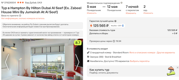 Hampton By Hilton Dubai Al Seef 3* с завтраками 62.800 рублей за человека (125.600 рублей за двоих)