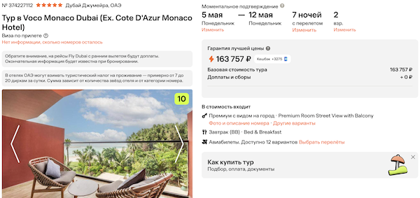 Voco Monaco Dubai 5* с завтраками 81.900 рублей за человека (163.800 рублей за двоих)