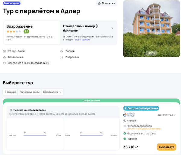 Стоимость в примерах указана за одного человека при условии поездки вдвоем, стоимость туров для одного человека можно посмотреть здесь или на страницах отелей.