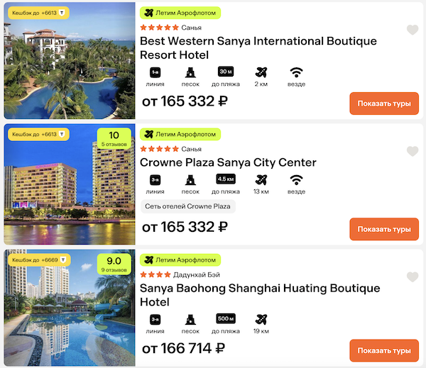 — прямой перелет в Санью и обратно, Аэрофлот;